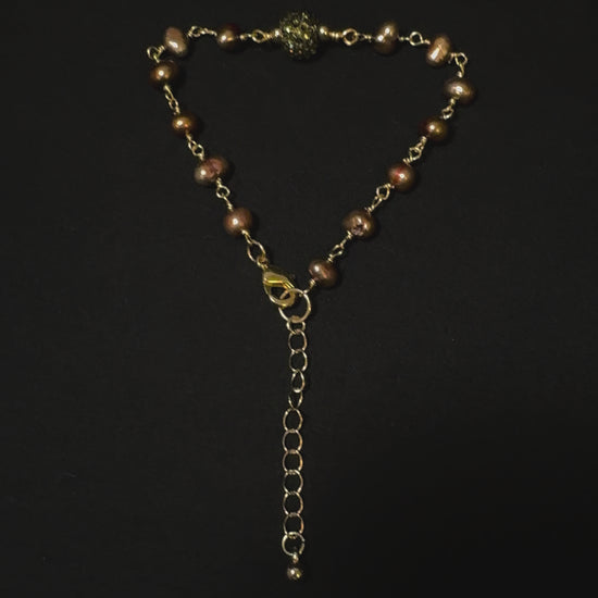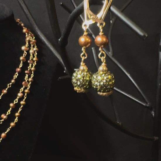 Genuine bronze freshwater pearls & crystal accents